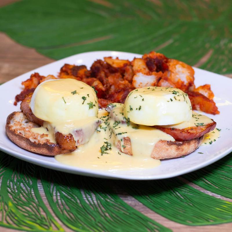 Upgrade your experience: Add Bacon or Sausage +$2.00 | Add Turkey Bacon or Turkey Sausage +$3.00 | Bone in Ham Steak +$4.50 | Add Blueberries +$2.00 | Add Chocolate Chips +$2.00 | Bananas Foster Style +$4.99